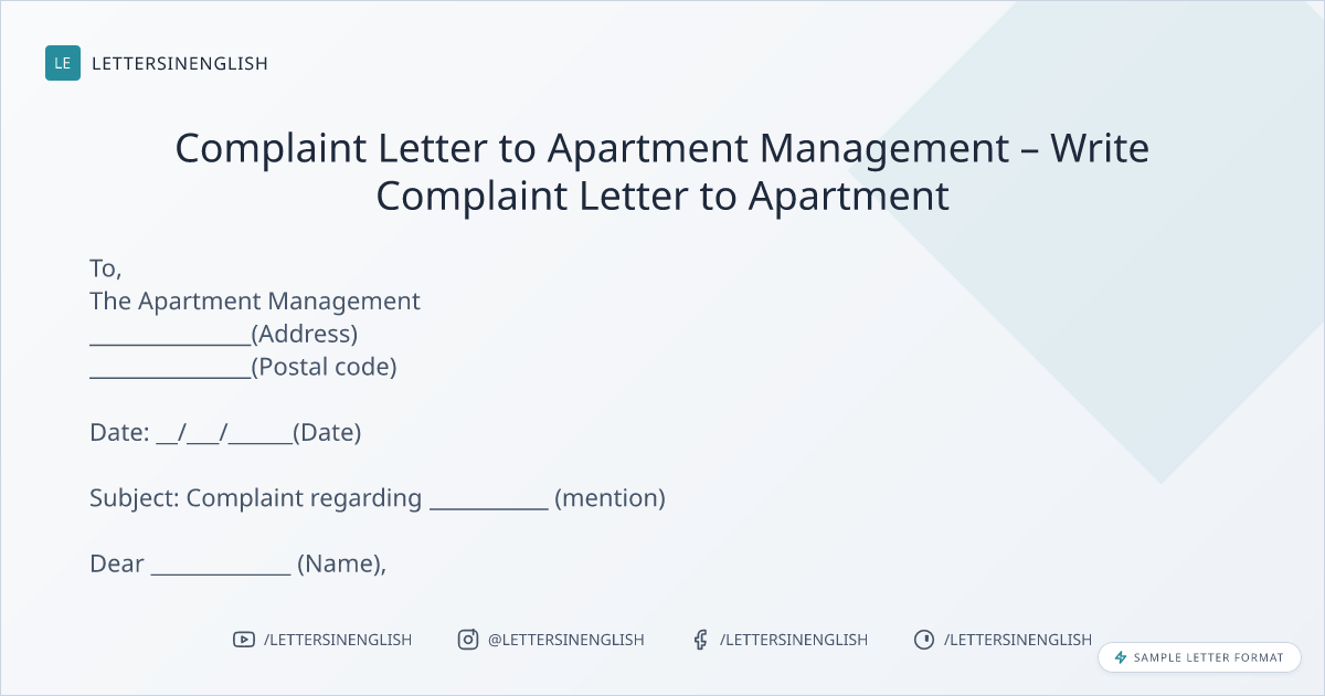 Complaint Letter to Apartment Management – Write Complaint Letter to Apartment