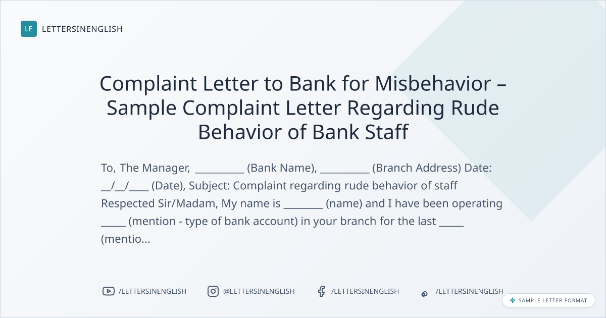Complaint Letter to Bank for Misbehavior – Sample Complaint Letter Regarding Rude Behavior of Bank Staff