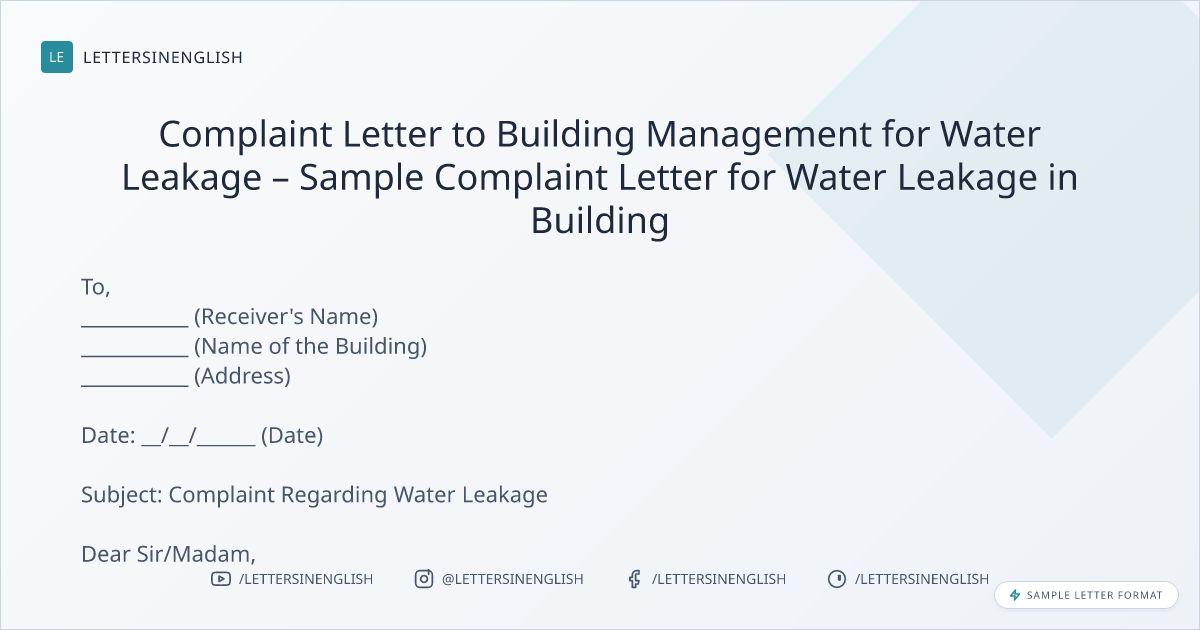 Complaint Letter to Building Management for Water Leakage – Sample Complaint Letter for Water Leakage in Building