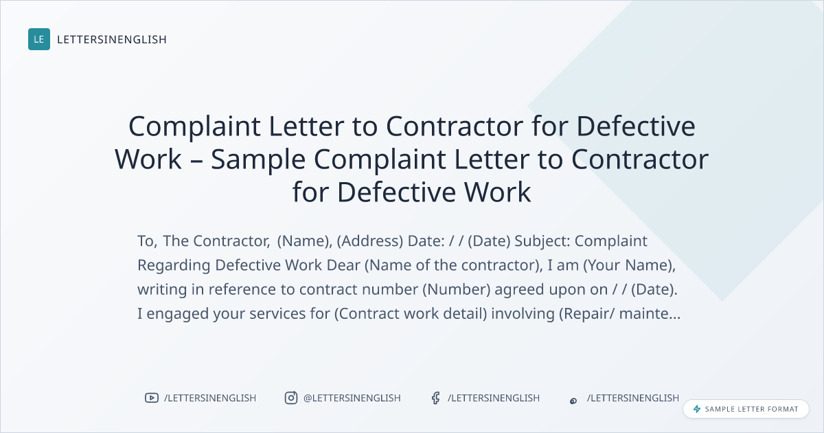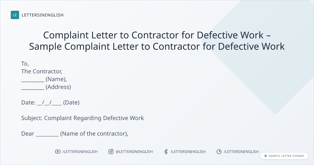 Complaint Letter to Contractor for Defective Work – Sample Complaint Letter to Contractor for Defective Work