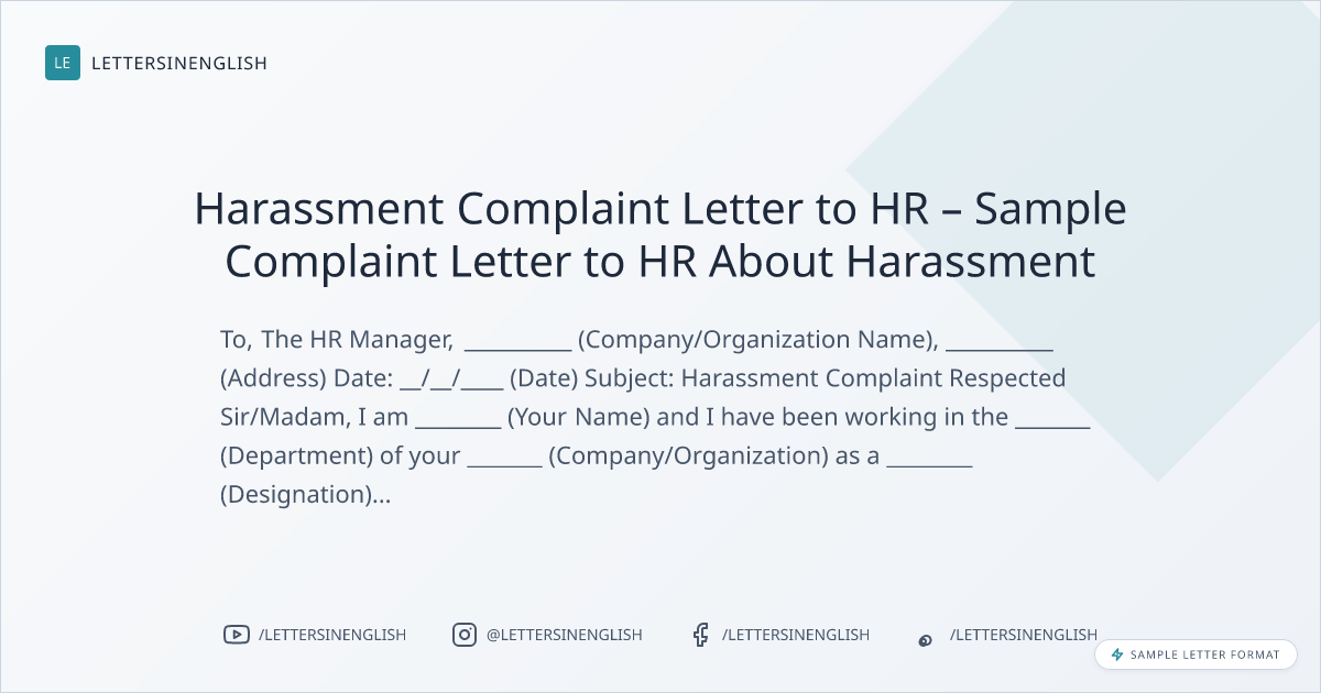 Harassment Complaint Letter to HR – Sample Complaint Letter to HR About Harassment