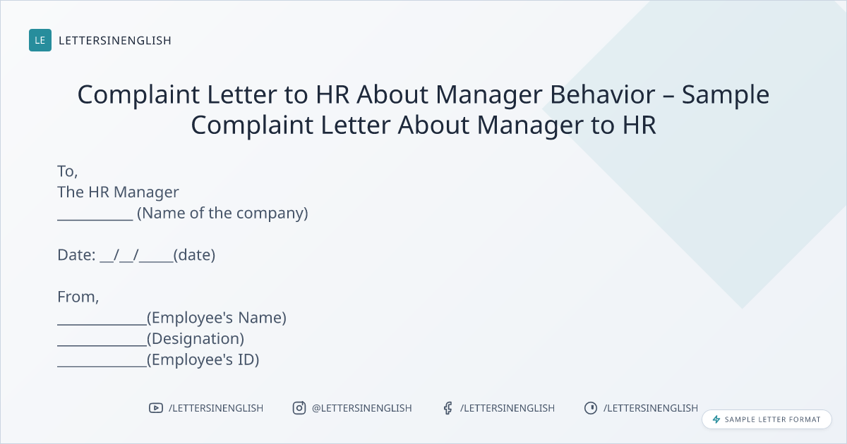 Complaint Letter to HR About Manager Behavior – Sample Complaint Letter About Manager to HR