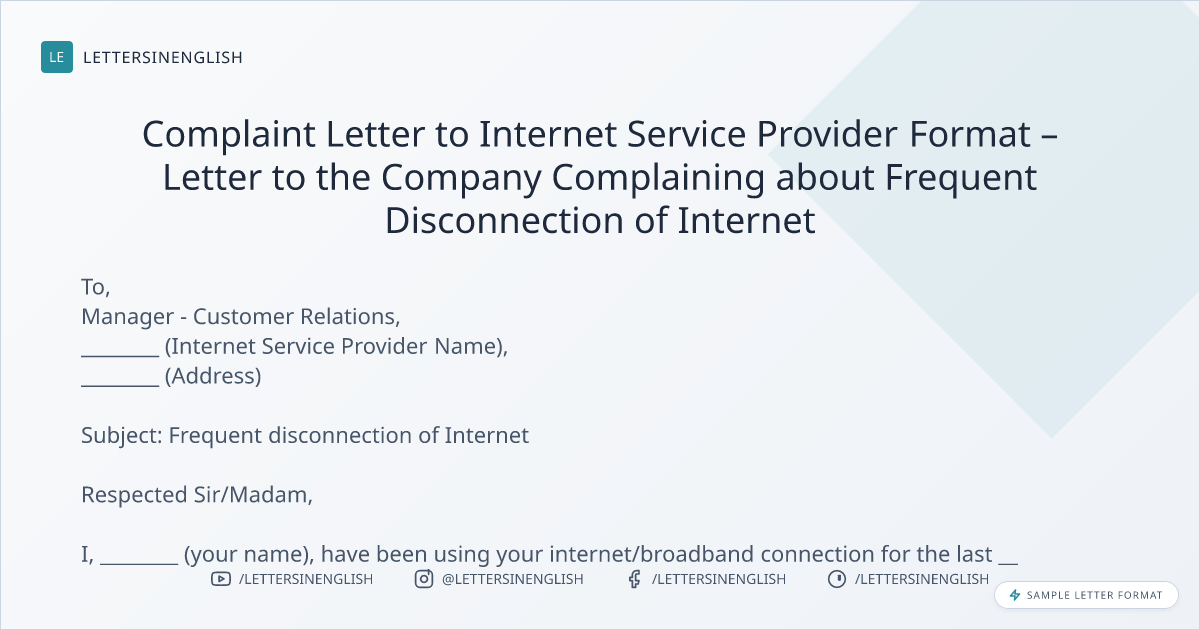 Complaint Letter to Internet Service Provider Format – Letter to the Company Complaining about Frequent Disconnection of Internet