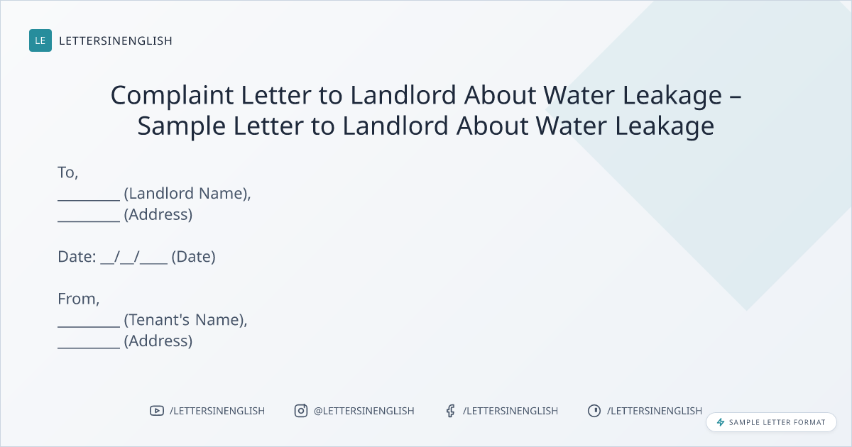 Complaint Letter to Landlord About Water Leakage – Sample Letter to Landlord About Water Leakage