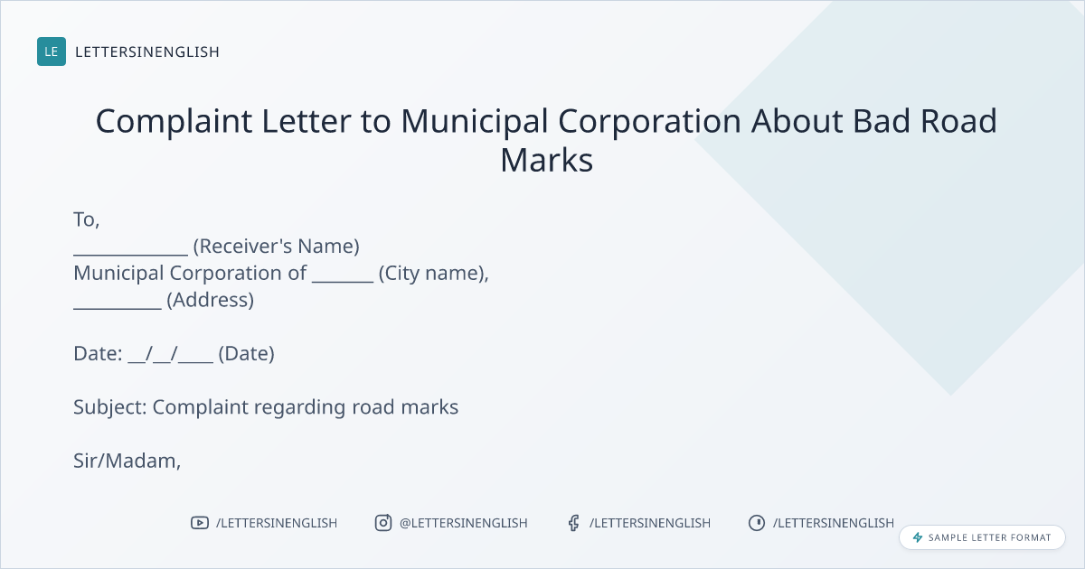 Complaint Letter to Municipal Corporation About Bad Road Marks