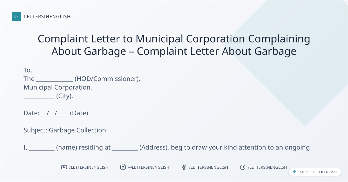 - Sample Complaint Letter to Municipal Corporation Complaining About Garbage