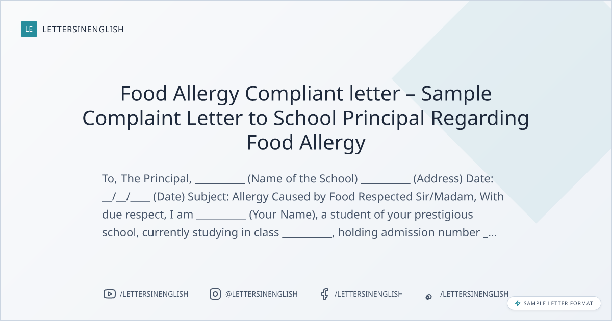 Food Allergy Compliant letter – Sample Complaint Letter to School Principal Regarding Food Allergy
