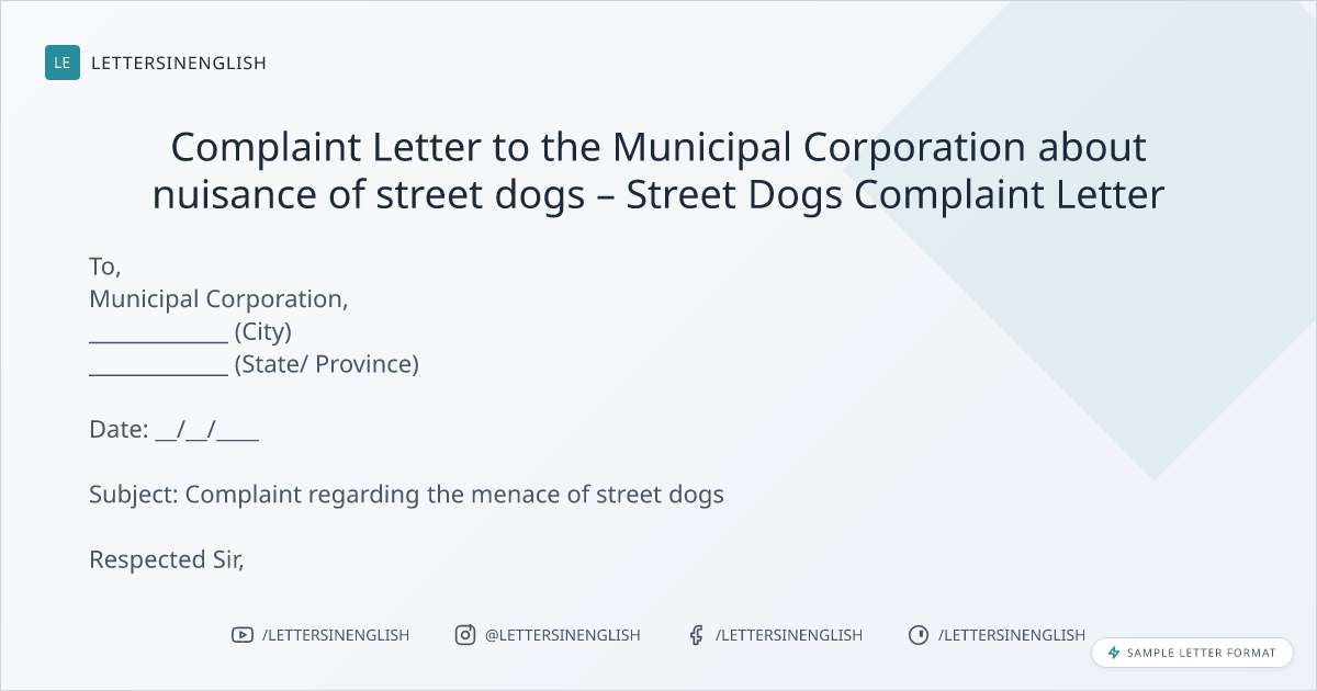 Complaint Letter About Menace of Street Dogs : Complaint Letter to the Municipal Corporation