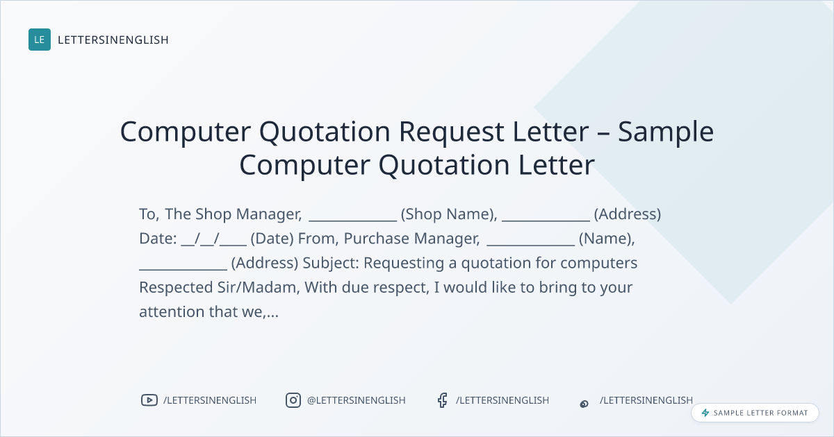 Computer Quotation Request Letter – Sample Computer Quotation Letter