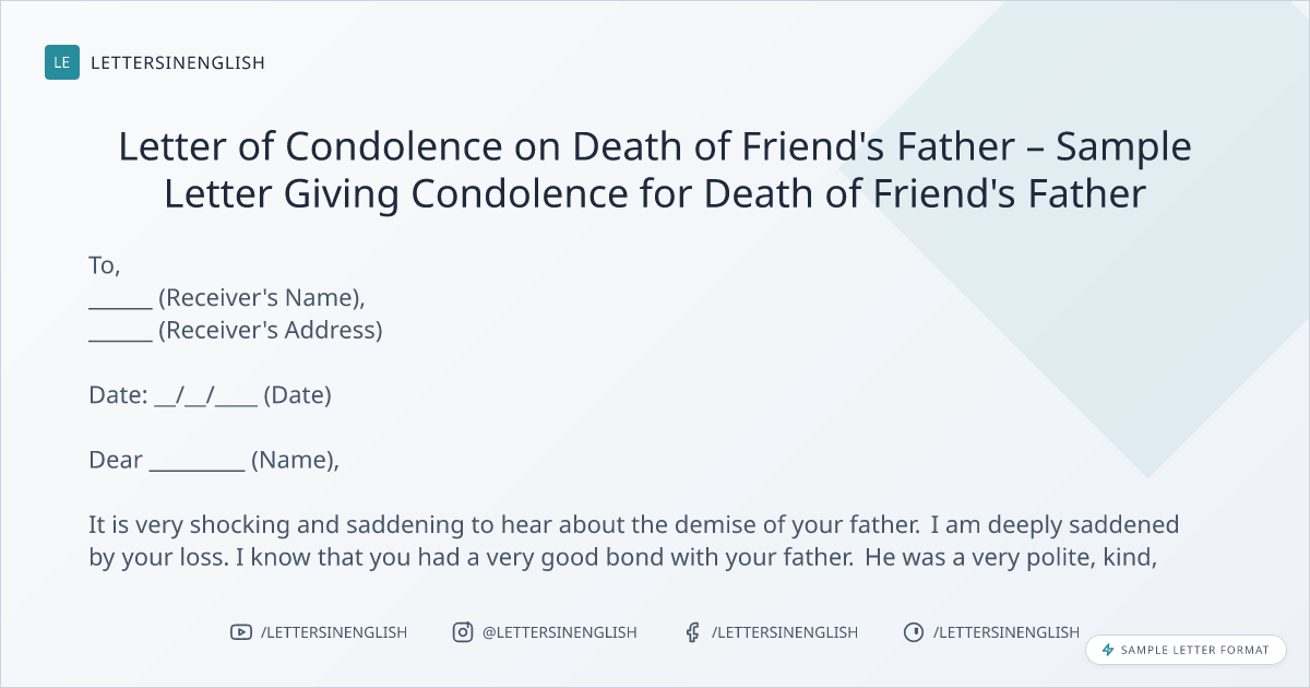 Letter of Condolence on Death of Friend’s Father – Sample Letter Giving Condolence for Death of Friend’s Father
