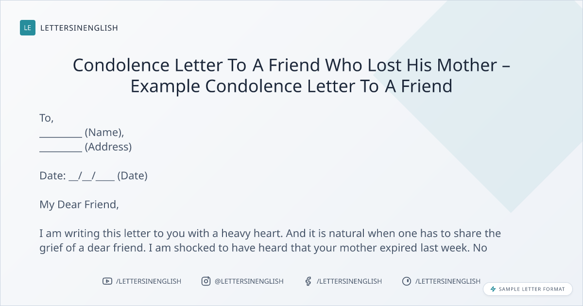 Sample Condolence Letter To A Friend Who Lost His Mother