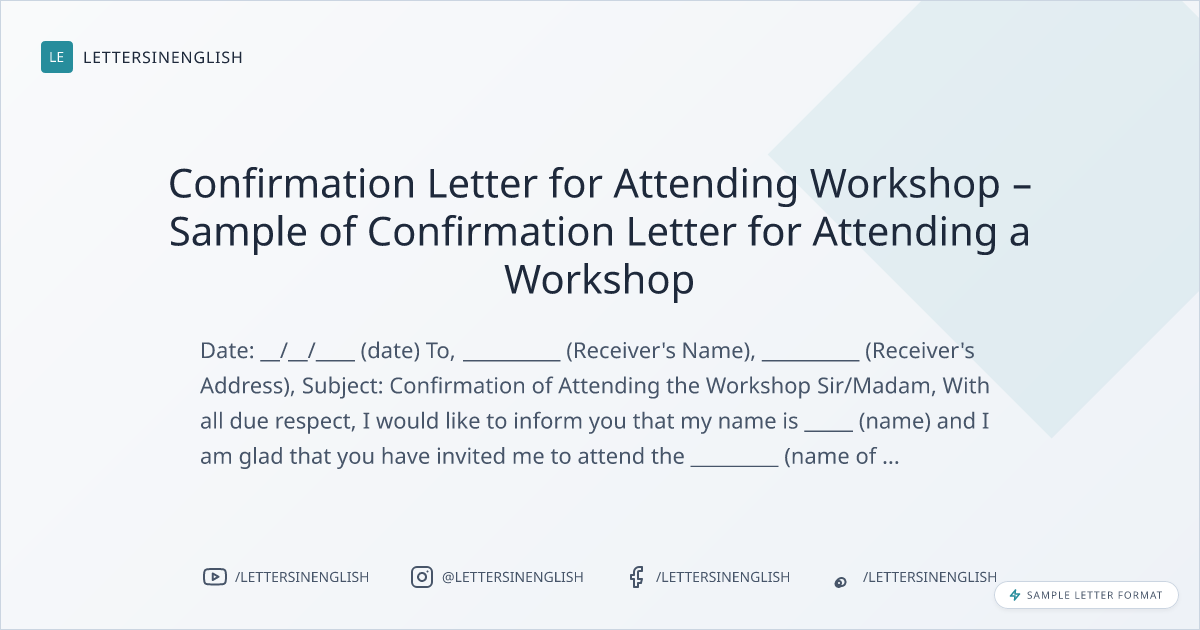 Confirmation Letter for Attending Workshop – Sample of Confirmation Letter for Attending a Workshop