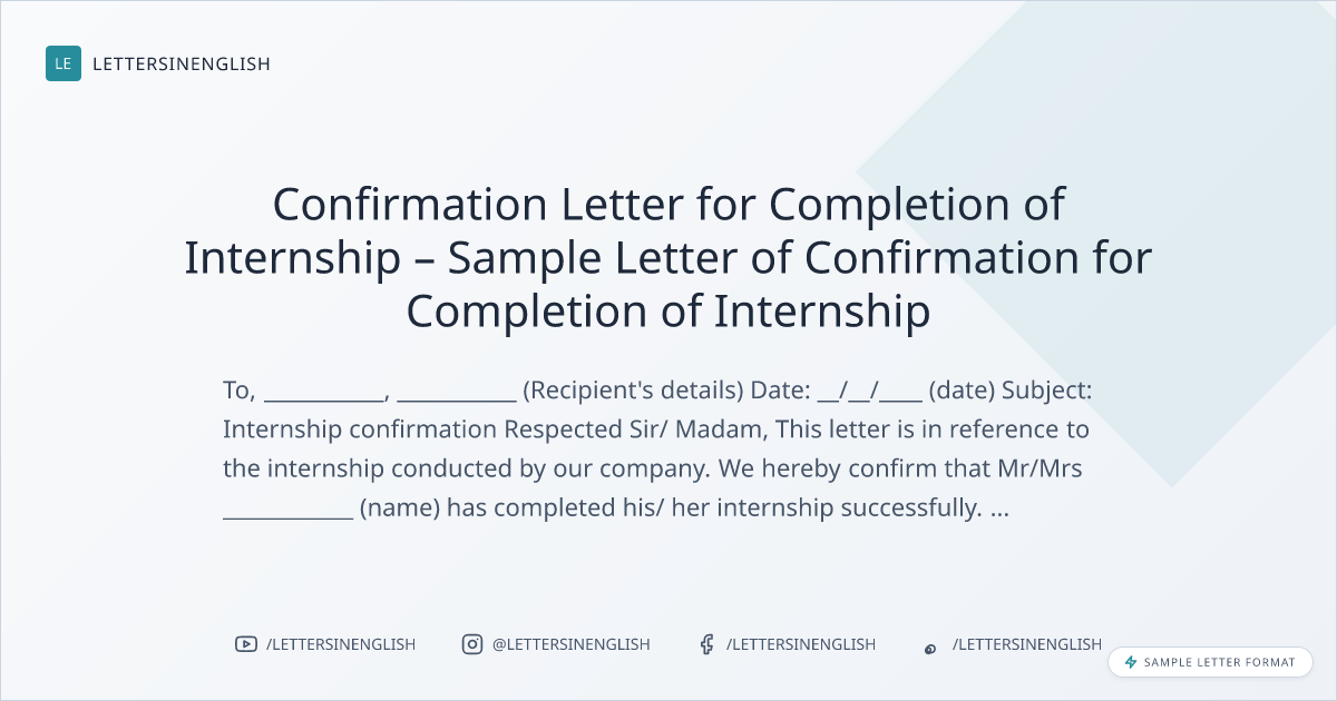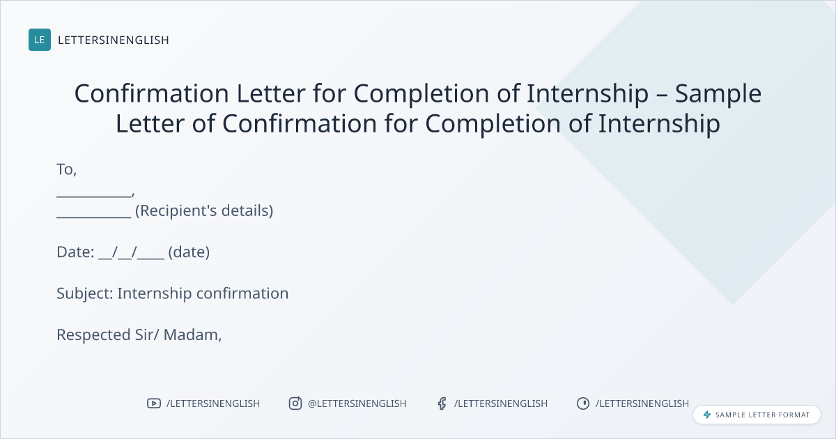 Confirmation Letter for Completion of Internship – Sample Letter of Confirmation for Completion of Internship