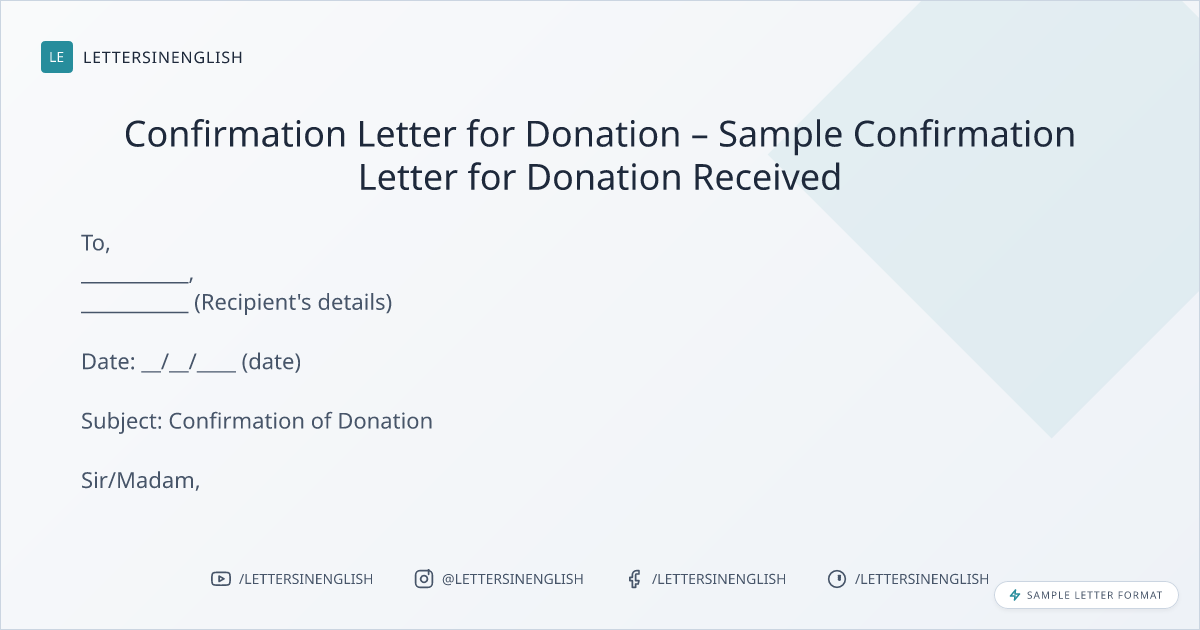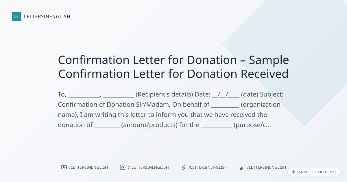 Confirmation Letter for Donation – Sample Confirmation Letter for Donation Received