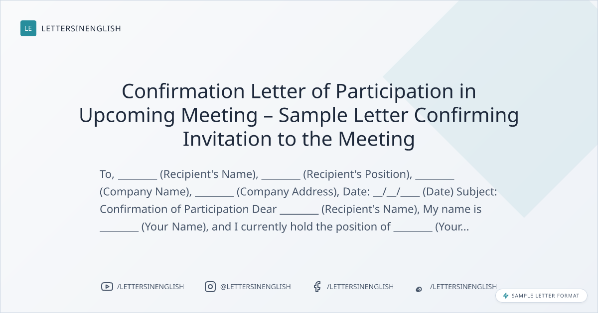 Confirmation Letter of Participation in Upcoming Meeting – Sample Letter Confirming Invitation to the Meeting