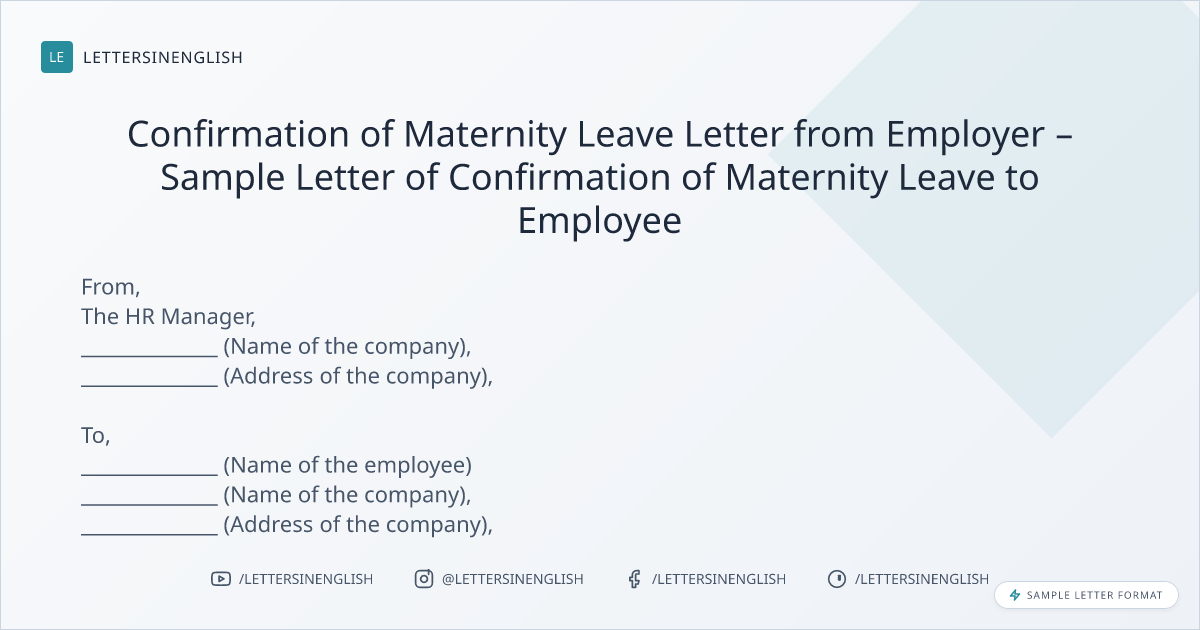 Confirmation of Maternity Leave Letter from Employer – Sample Letter of Confirmation of Maternity Leave to Employee