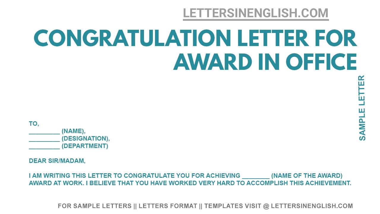 I am writing this letter to congratulate you for achieving ________ (name of the award) award at work. I believe that you have worked very hard to accomplish this achievement.