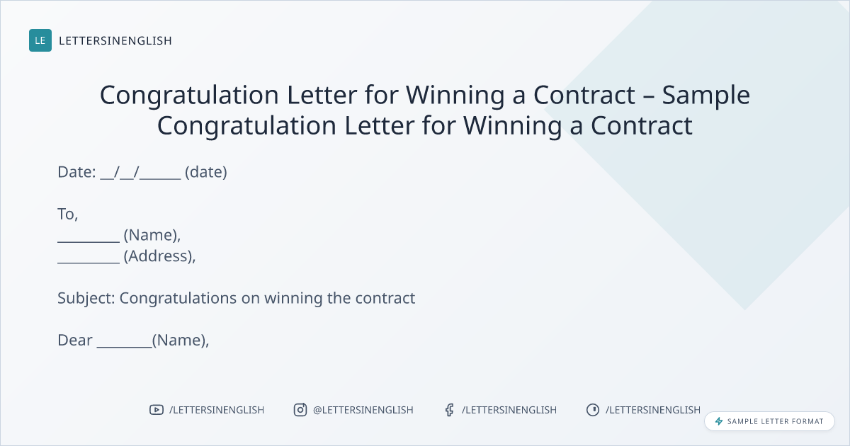 Congratulation Letter for Winning a Contract – Sample Congratulation Letter for Winning a Contract