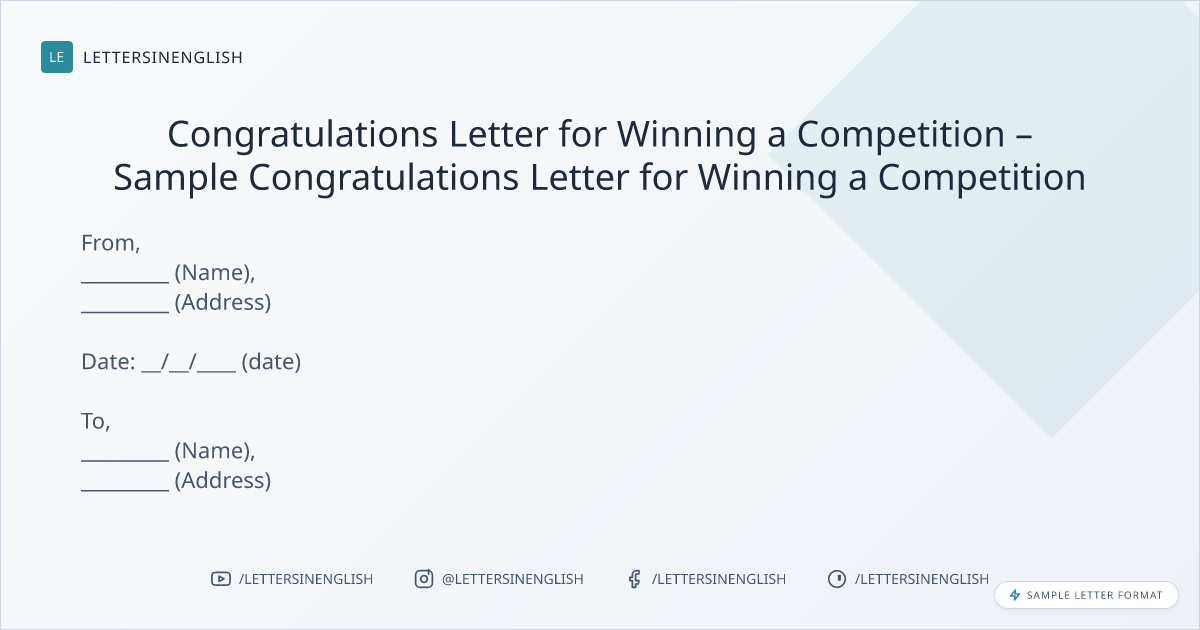 Congratulations Letter for Winning a Competition – Sample Congratulations Letter for Winning a Competition
