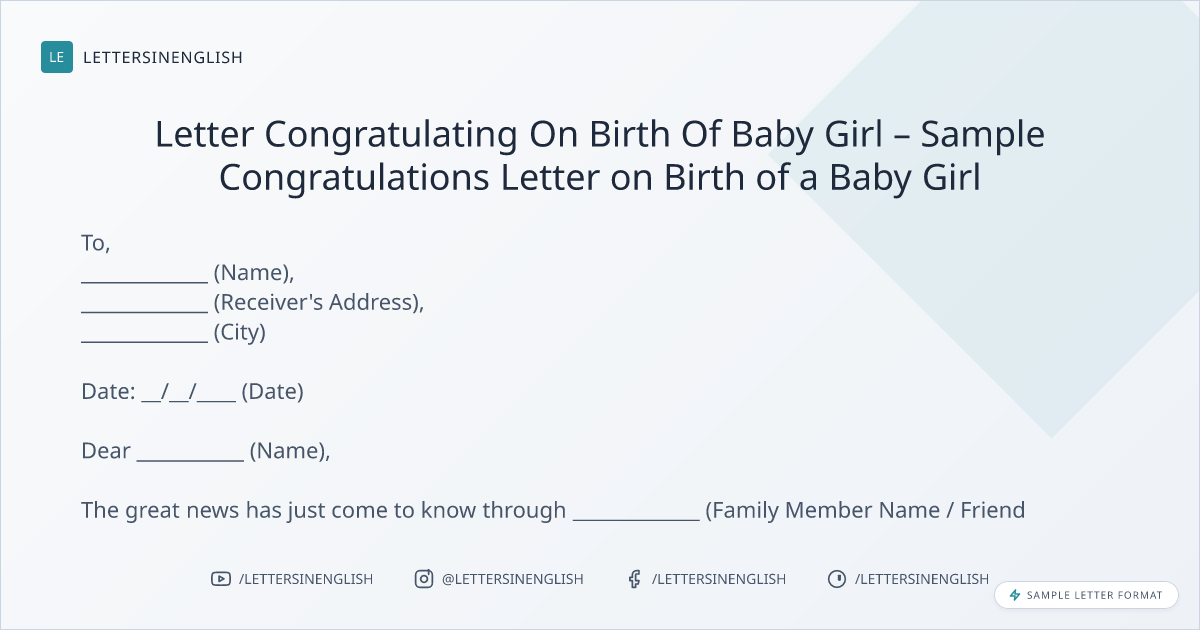 Sample Congratulations Letter on Birth of a Baby Girl