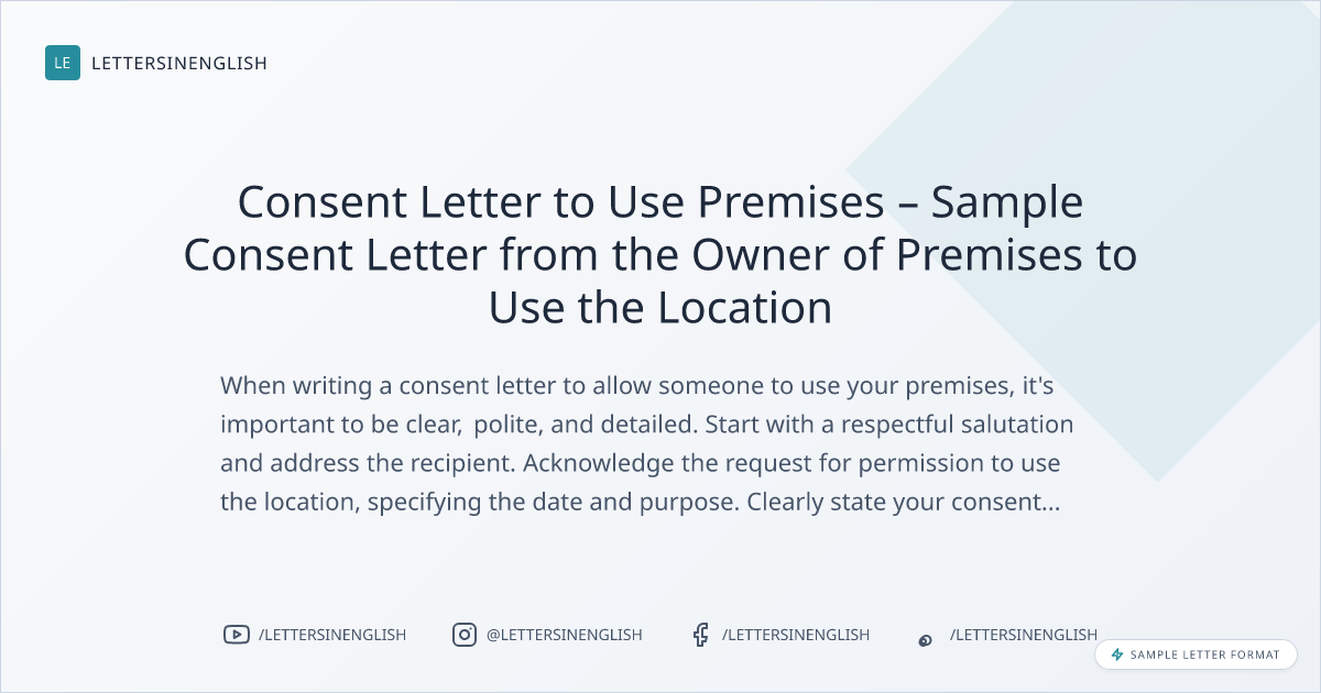 Consent Letter to Use Premises – Sample Consent Letter from the Owner of Premises to Use the Location