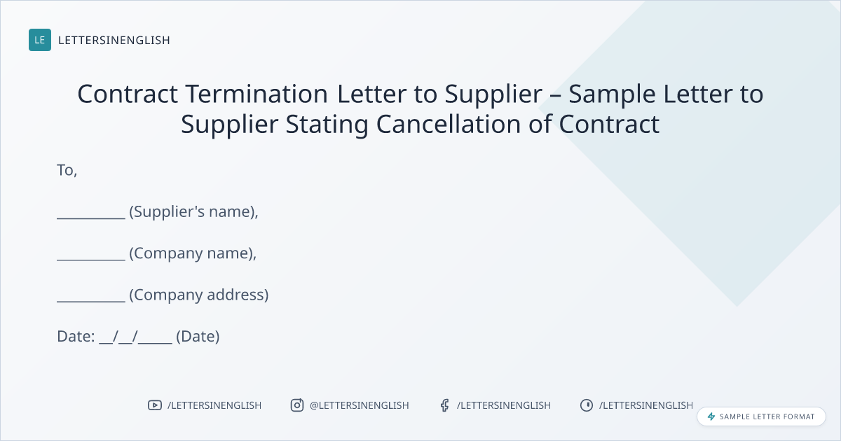 Contract Termination Letter to Supplier – Sample Letter to Supplier Stating Cancellation of Contract