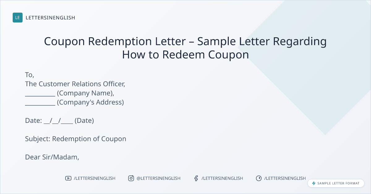 Coupon Redemption Letter – Sample Letter Regarding How to Redeem Coupon