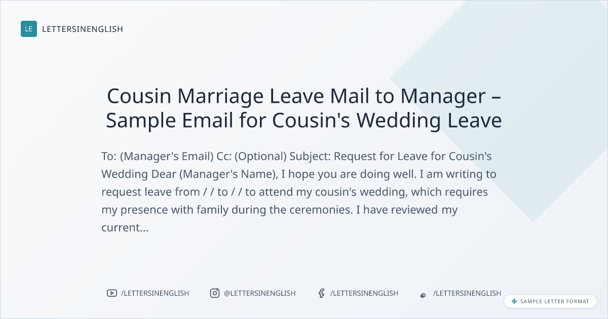 Cousin Marriage Leave Email to Manager - Professional Template for Wedding Leave