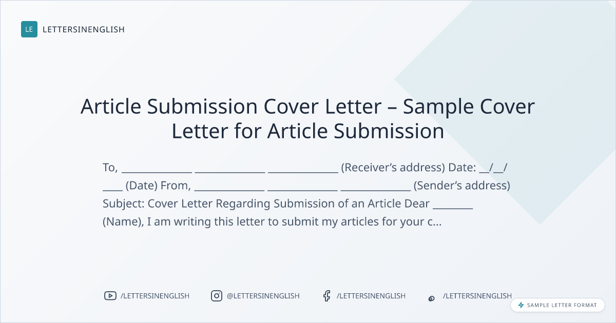 Sample Cover Letter for Article Submission