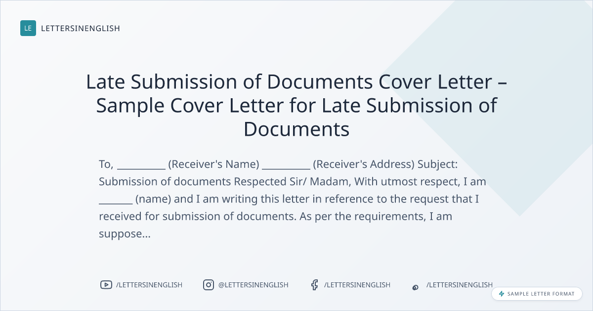 Late Submission of Documents Cover Letter – Sample Cover Letter for Late Submission of Documents