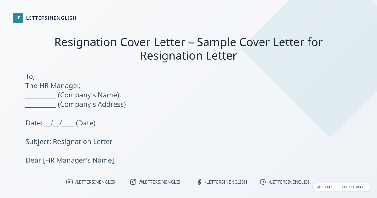 Resignation Cover Letter – Sample Cover Letter for Resignation Letter