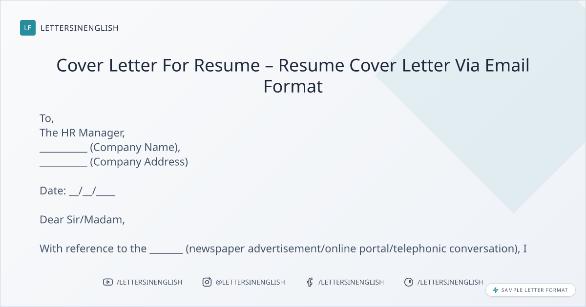Cover Letter For Resume – Resume Cover Letter Via Email Format