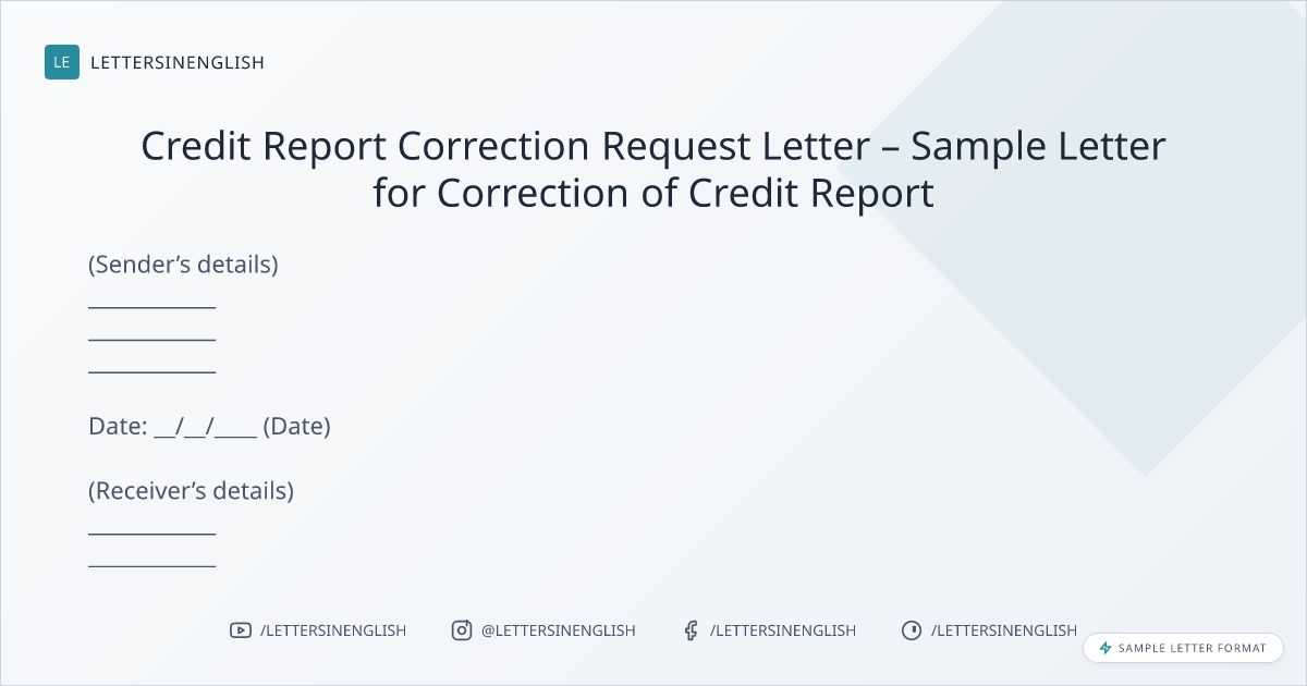 Credit Report Correction Request Letter – Sample Letter for Correction of Credit Report