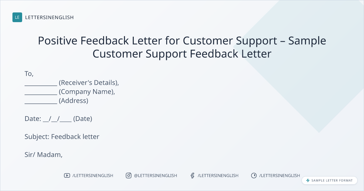 Positive Feedback Letter for Customer Support – Sample Customer Support Feedback Letter