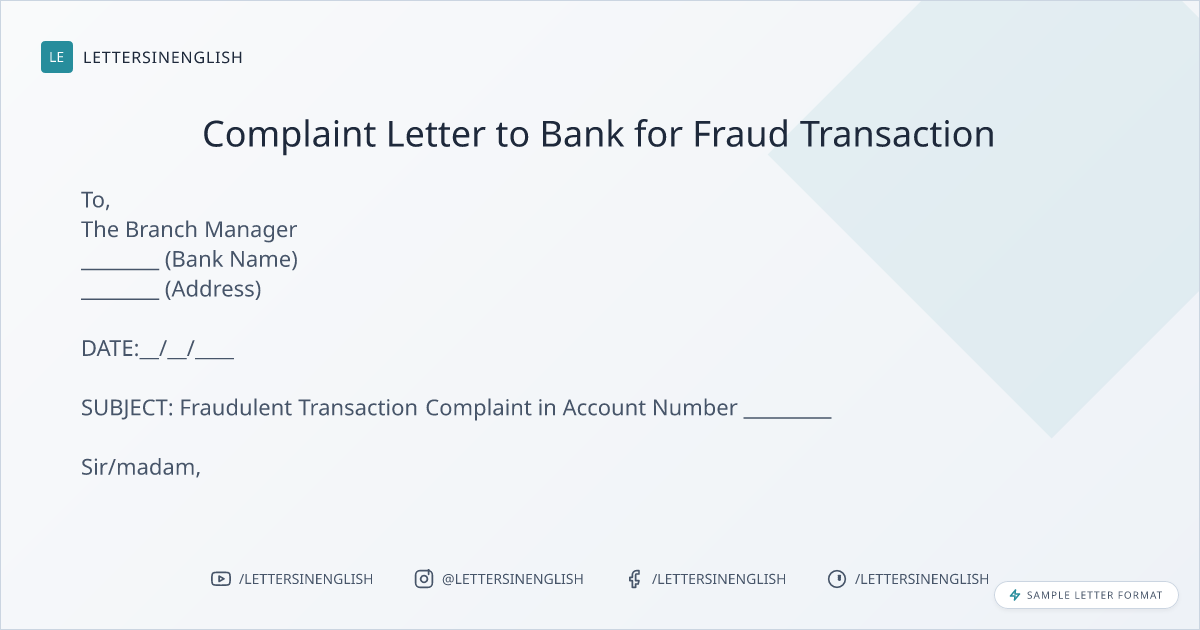 Complaint Letter to Bank for Fraud Transaction