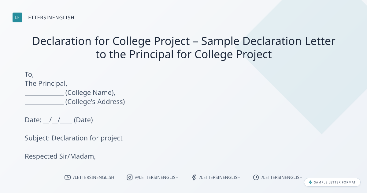 Sample Declaration Letter to the Principal for College Project