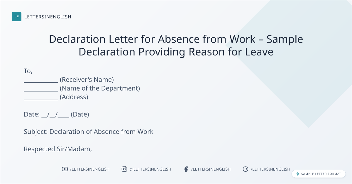Declaration Letter for Absence from Work – Sample Declaration Providing Reason for Leave