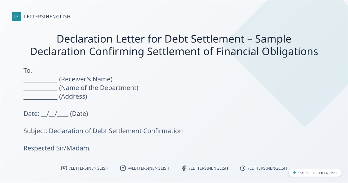 Declaration Letter for Debt Settlement
