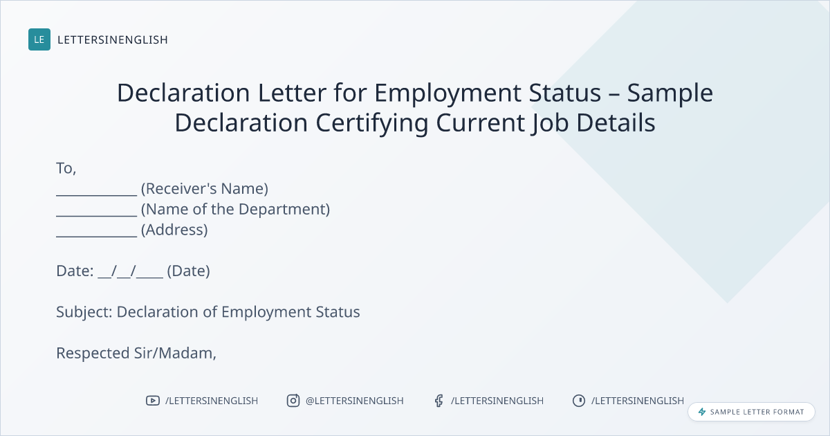 Declaration Letter for Employment Status – Sample Declaration Certifying Current Job Details