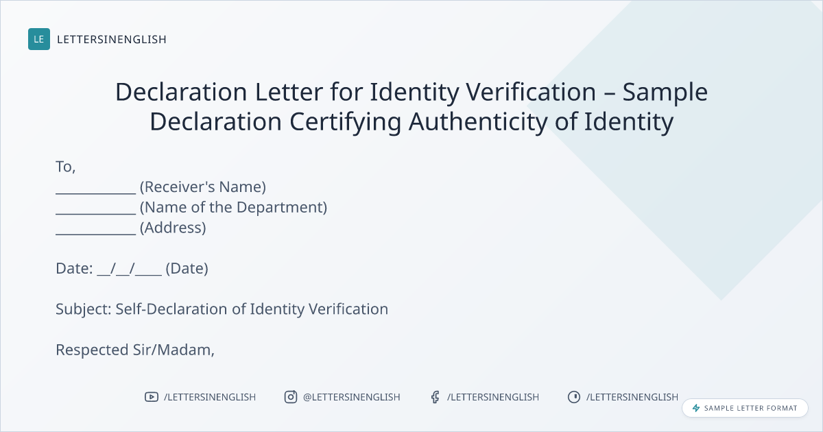 Declaration Letter for Identity Verification – Sample Declaration Certifying Authenticity of Identity