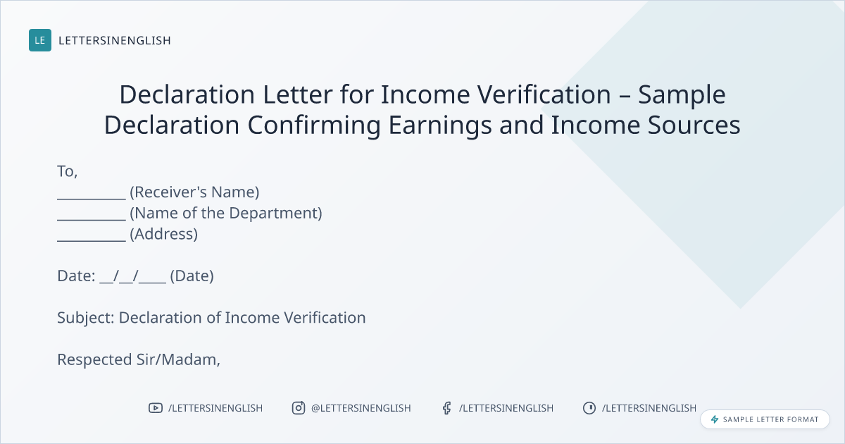 Declaration Letter for Income Verification – Sample Declaration Confirming Earnings and Income Sources