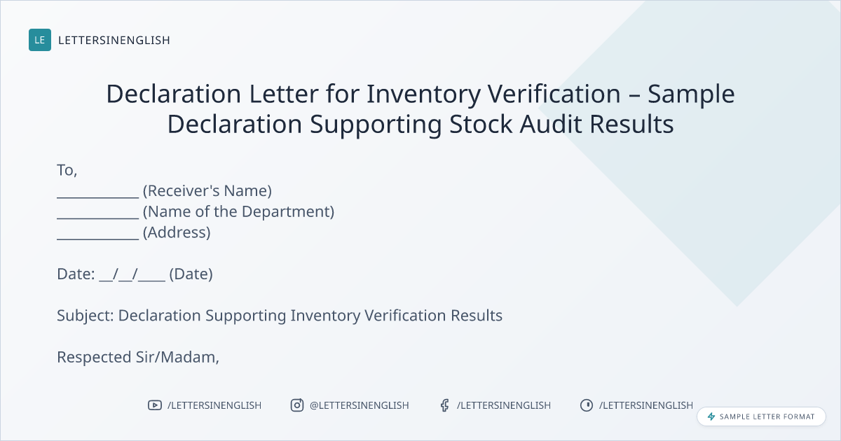 Declaration Letter for Inventory Verification