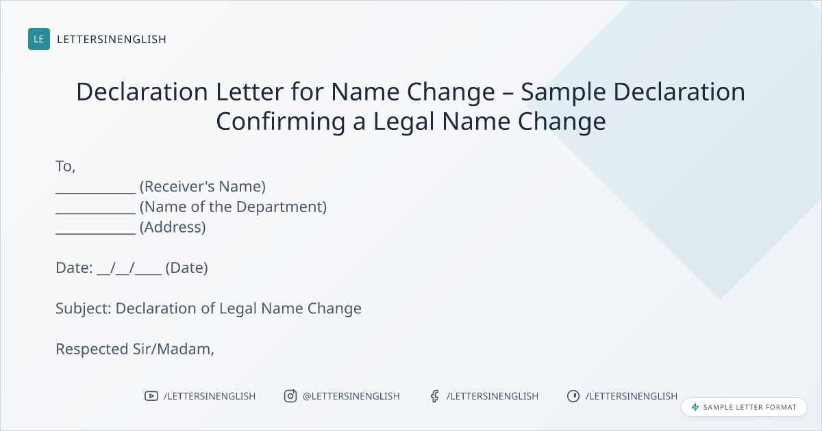 Declaration Letter for Name Change – Sample Declaration Confirming a Legal Name Change