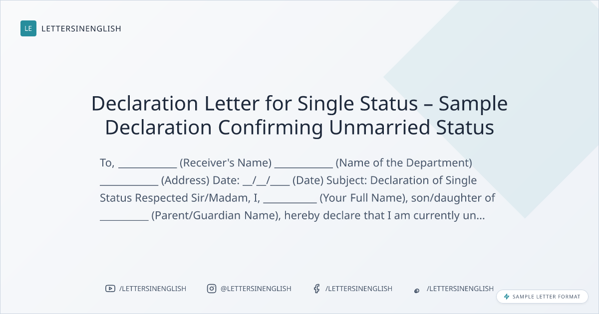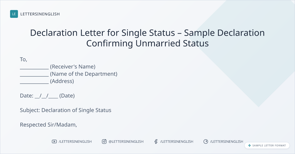Declaration Letter for Single Status – Sample Declaration Confirming Unmarried Status