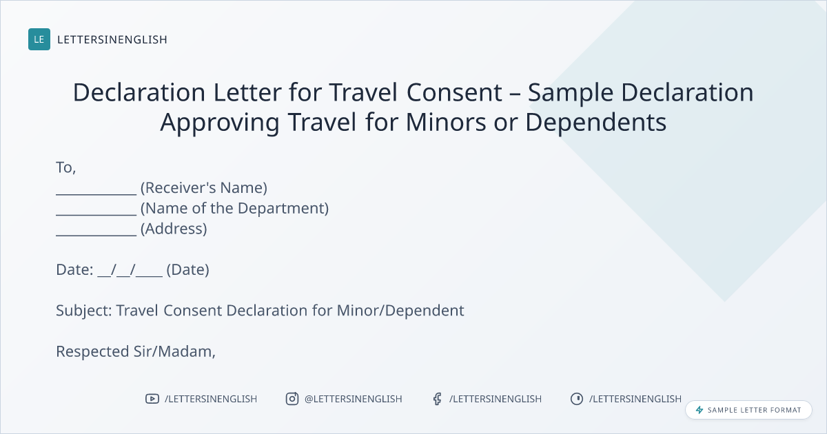 Declaration Letter for Travel Consent – Sample Declaration Approving Travel for Minors or Dependents