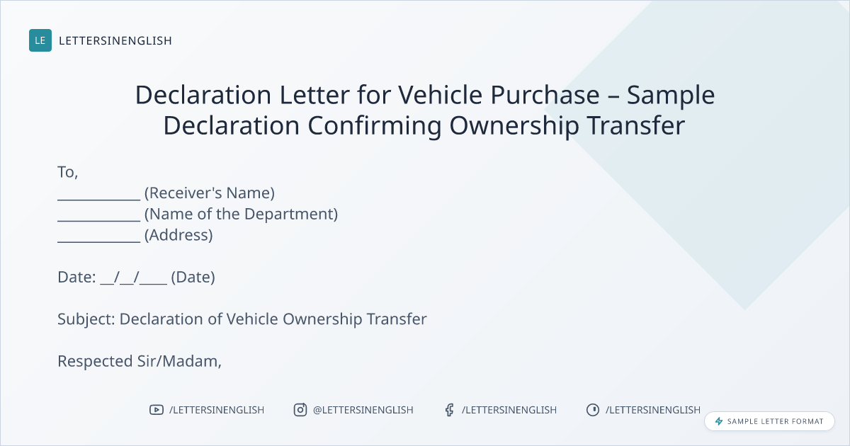 Declaration Letter for Vehicle Purchase – Sample Declaration Confirming Ownership Transfer