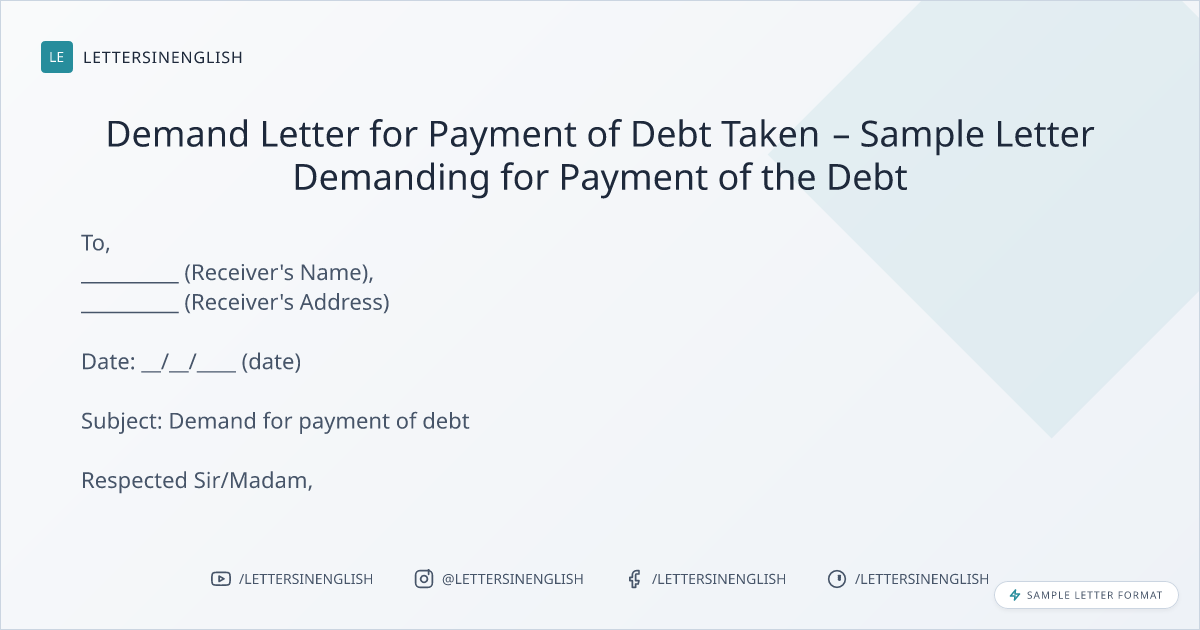 Demand Letter for Payment of Debt Taken – Sample Letter Demanding for Payment of the Debt