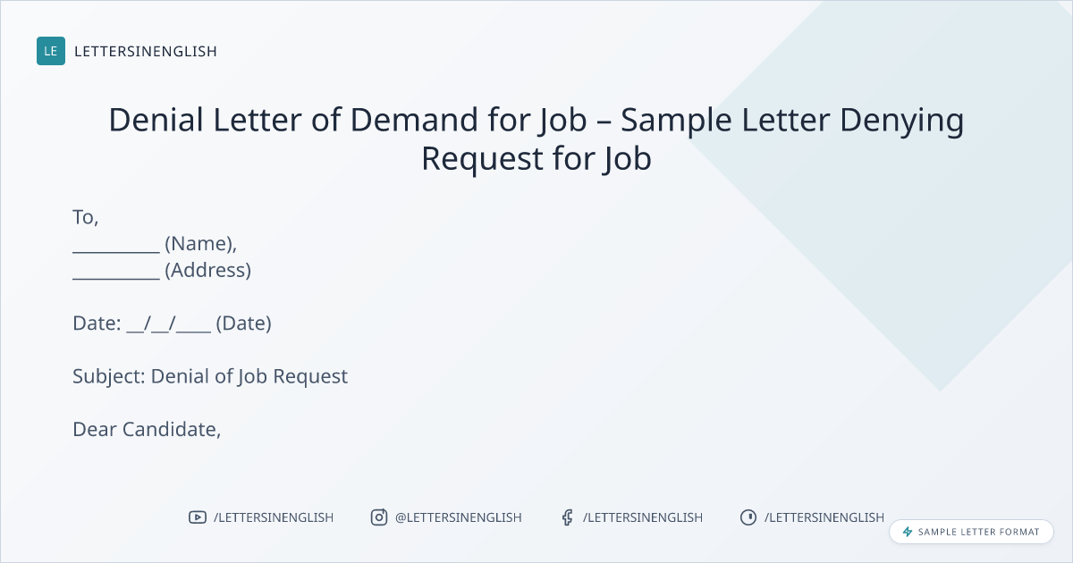 Denial Letter of Demand for Job – Sample Letter Denying Request for Job