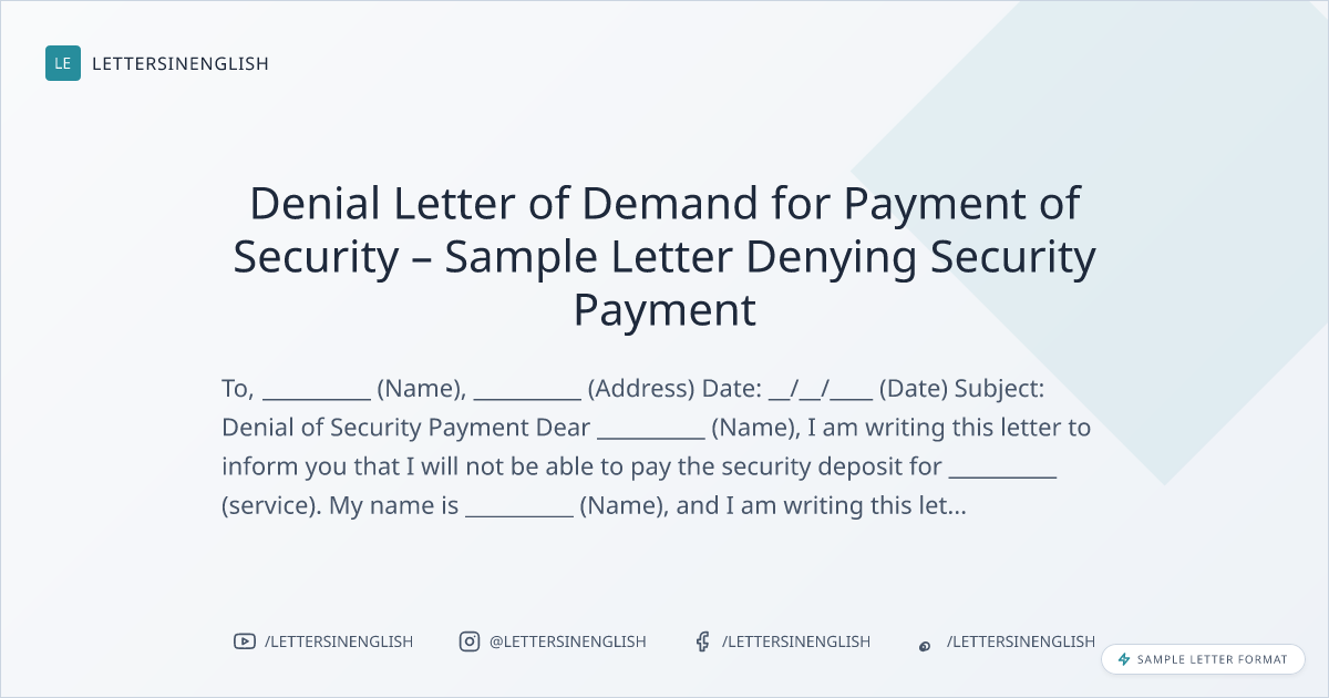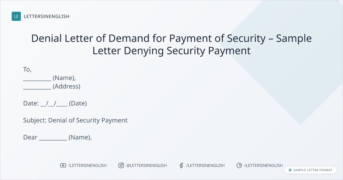 Denial Letter of Demand for Payment of Security – Sample Letter Denying Security Payment