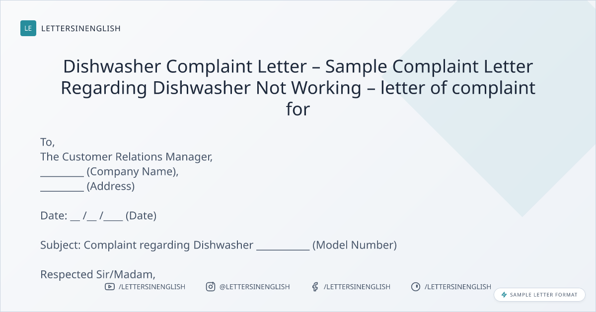 Dishwasher Complaint Letter – Sample Complaint Letter Regarding Dishwasher Not Working – letter of complaint for